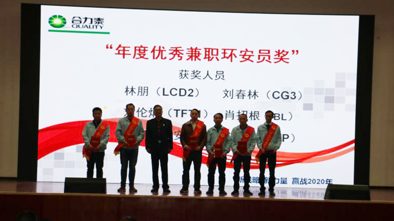 1月8日,合力泰科技股份有限公司2019年度環保安全工作總結暨表彰大會在江西泰和科技園會議中心隆重舉行。會上全面總結了公司2019年度環保安全工作,分析了公司環保安全工作現面臨的形勢和存在的問題,同時表彰了環安工作先進單位及個人,并對 2020年環保安全工作進行安排部署。人力行政中心副總裁盧忠榮以及各廠區經理級以上、部門助理、環安員、稽核和保安班長等人員通過視頻連線參加會議。會議由行政管理中心總監劉武平主持。